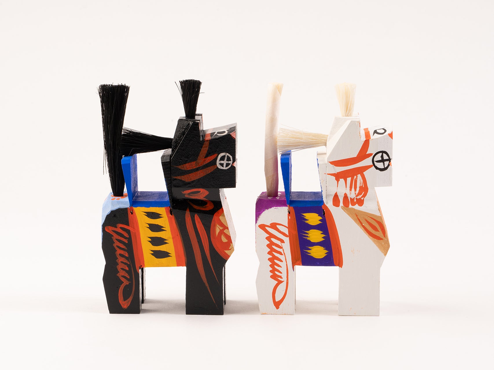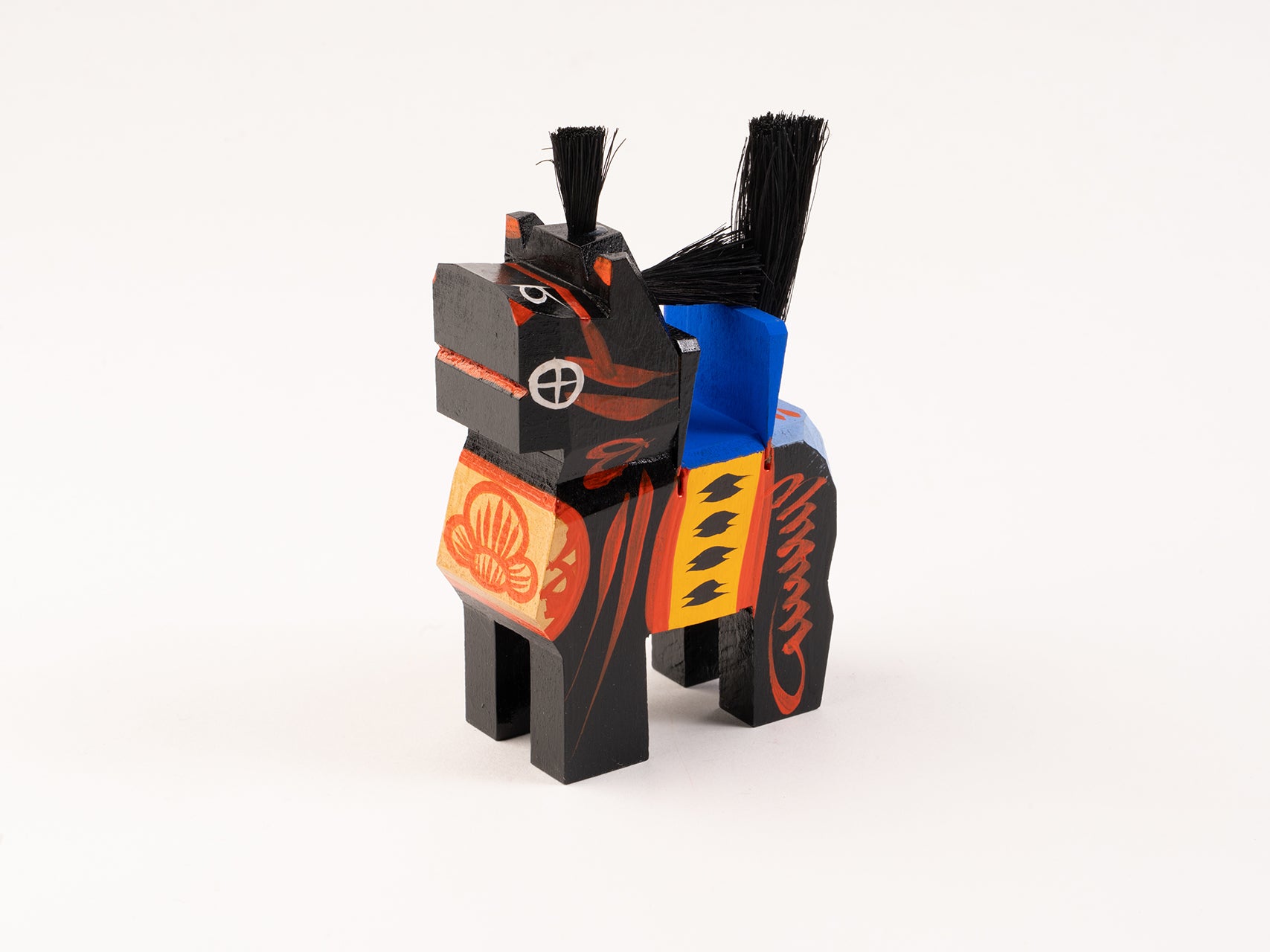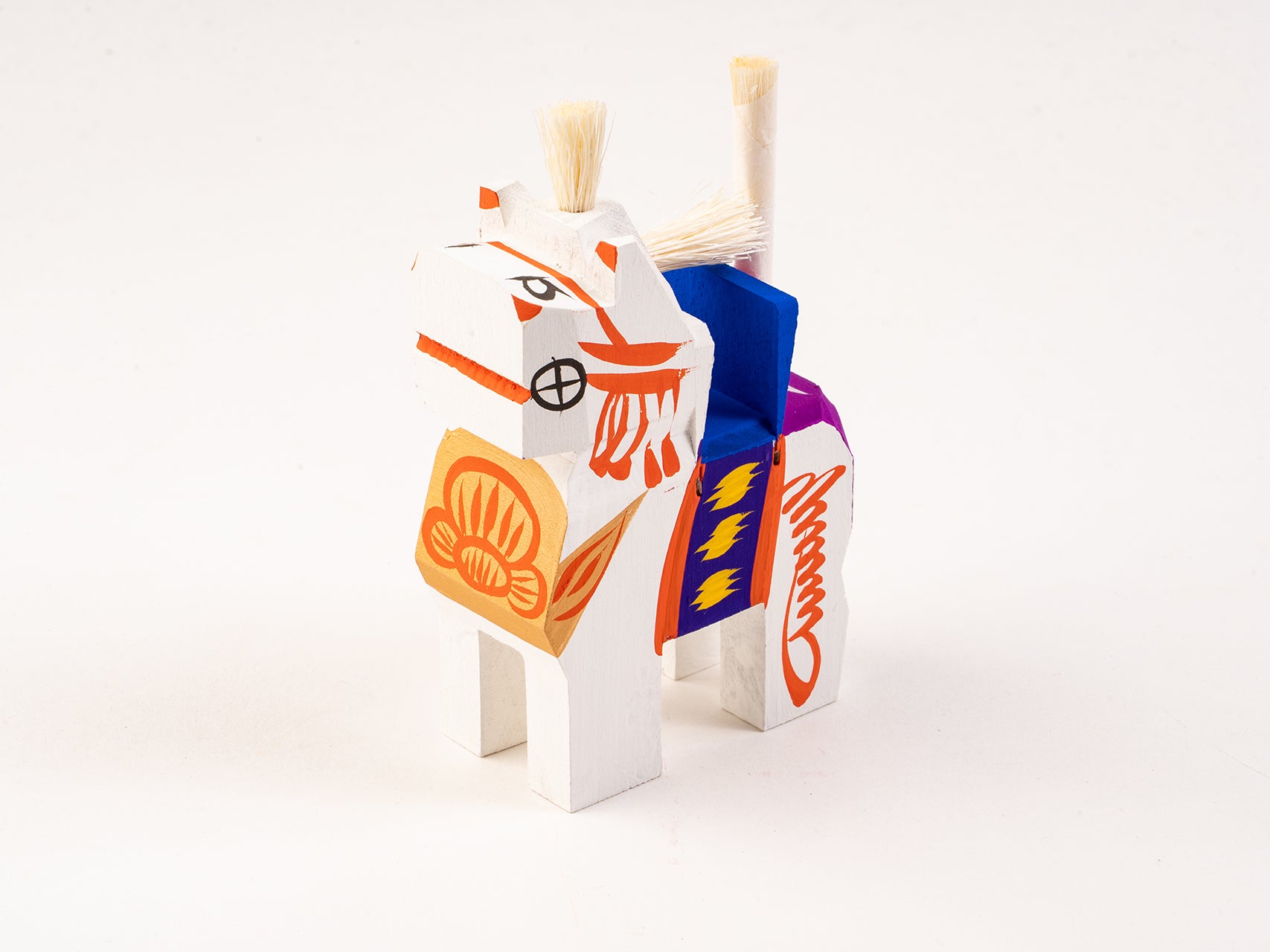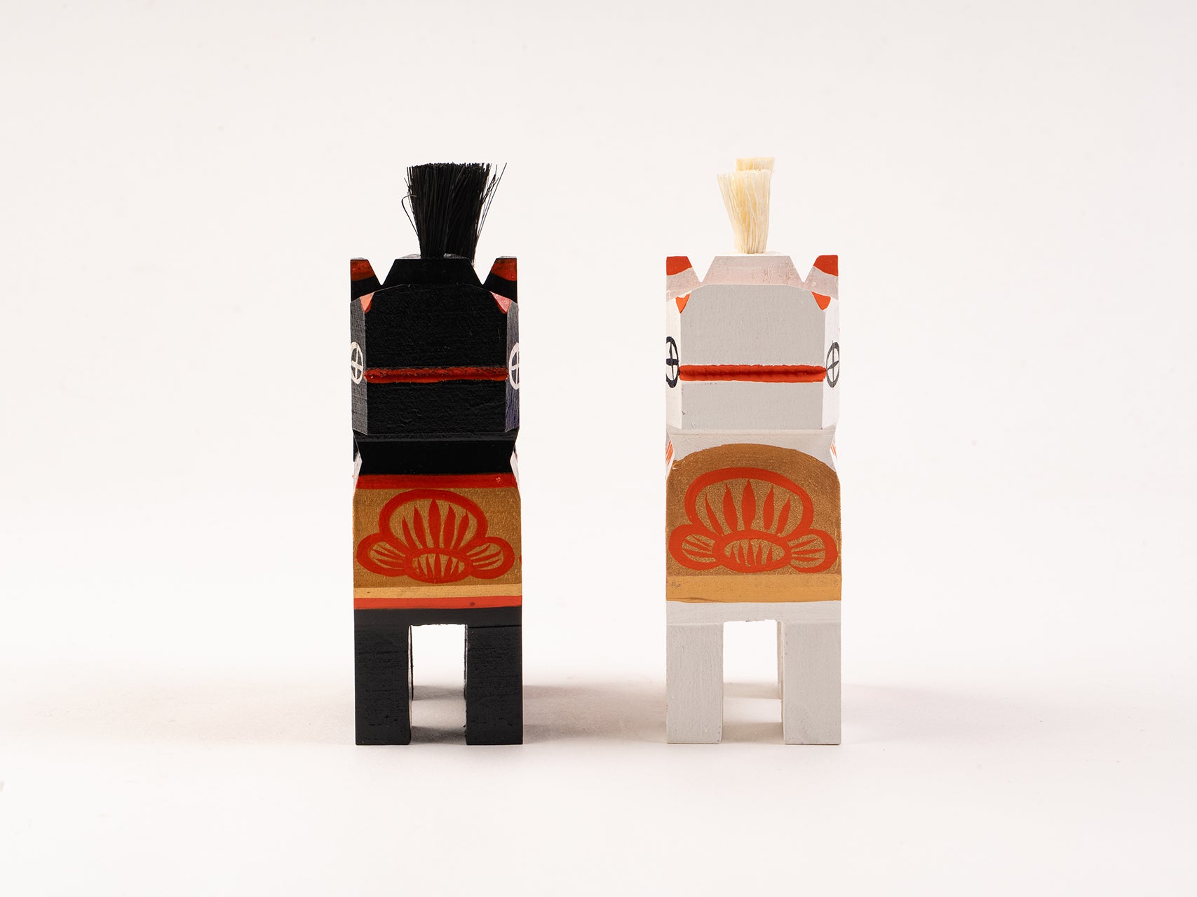 福島県は江戸時代より、全国的に有名な馬の産地となりました。そしてこの馬をモチーフに作られはじめたのが郷土玩具の三春駒(みはるごま)です。黒色が子供のお守り、白色がお年寄りのお守りと言われる縁起物です。