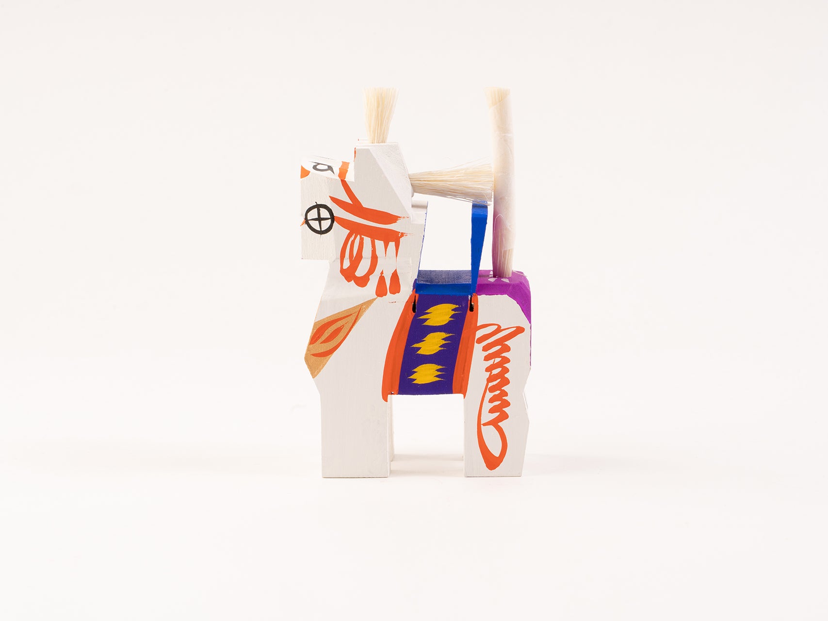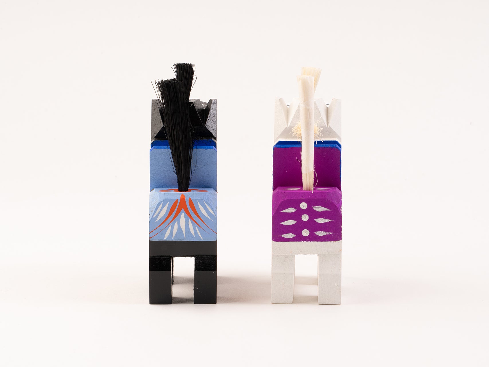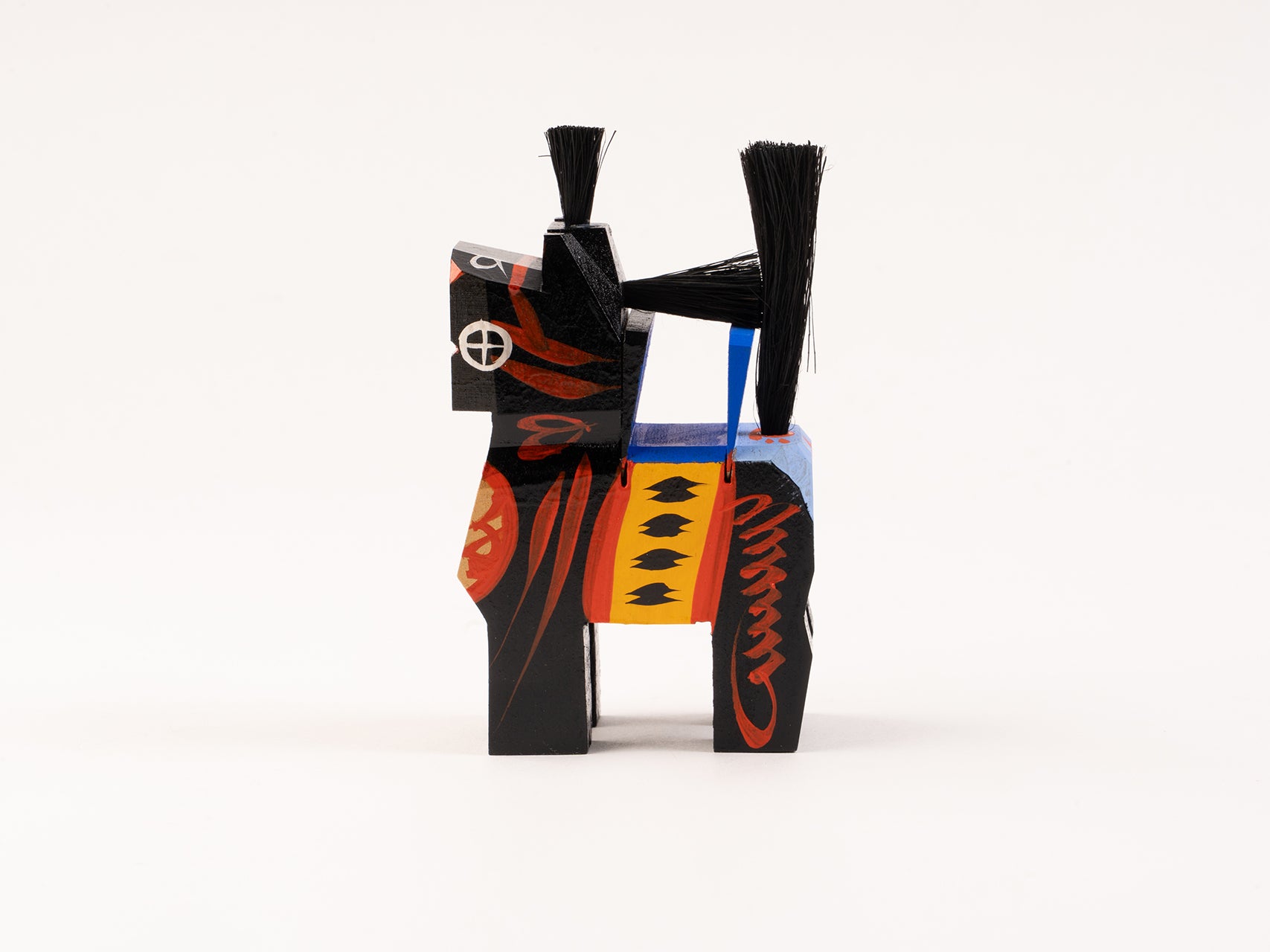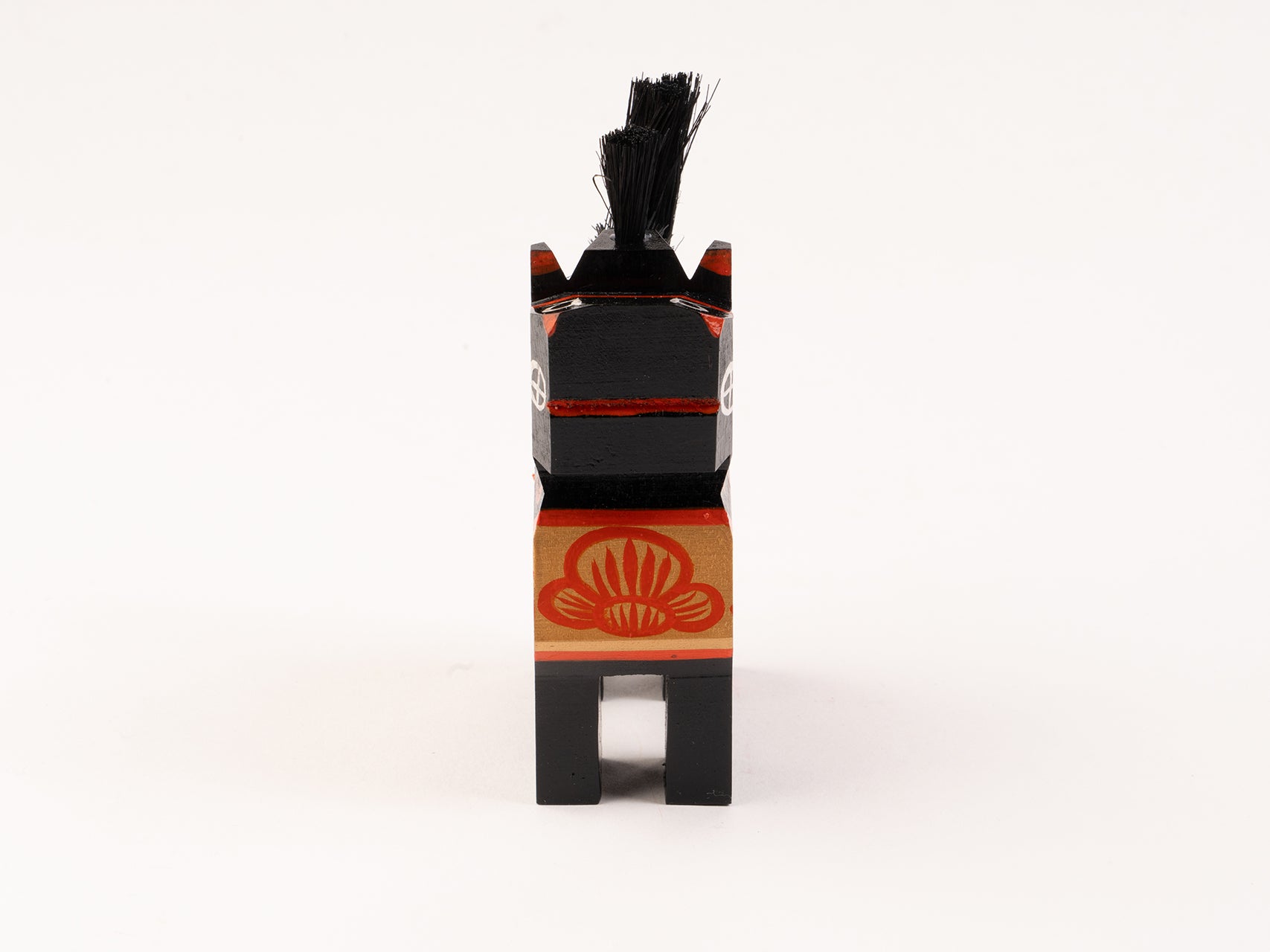 福島県は江戸時代より、全国的に有名な馬の産地となりました。そしてこの馬をモチーフに作られはじめたのが郷土玩具の三春駒(みはるごま)です。黒色が子供のお守り、白色がお年寄りのお守りと言われる縁起物です。