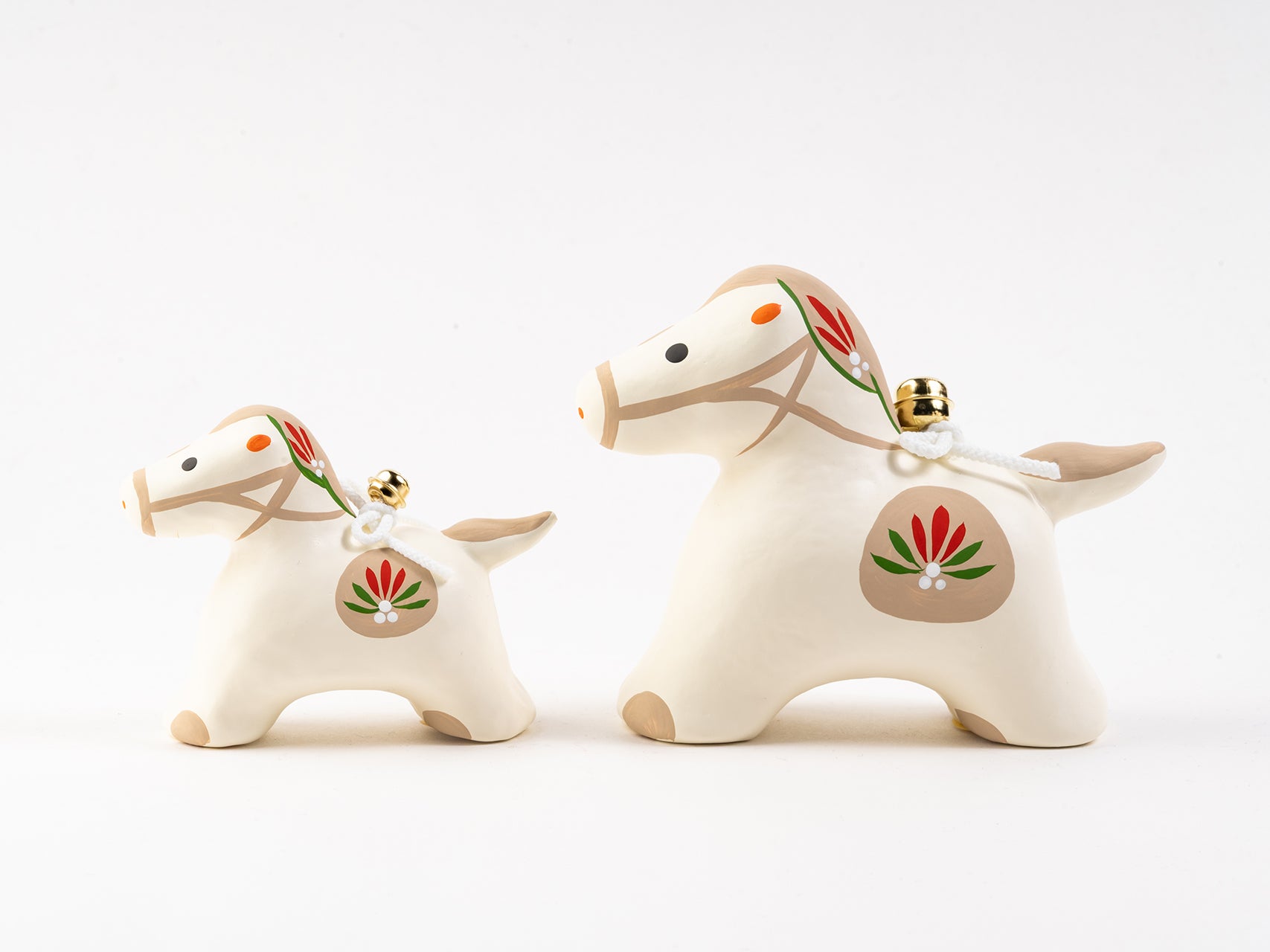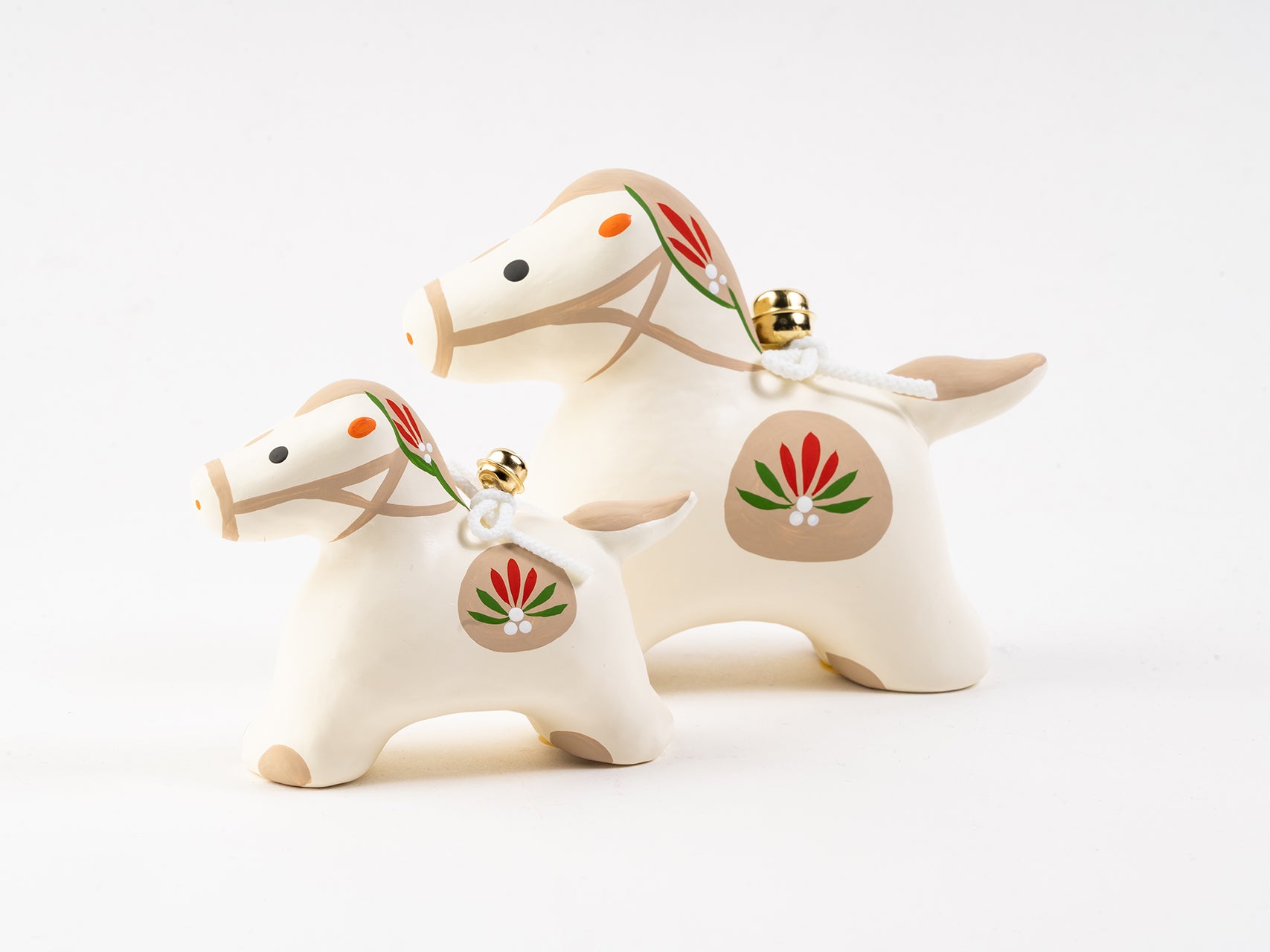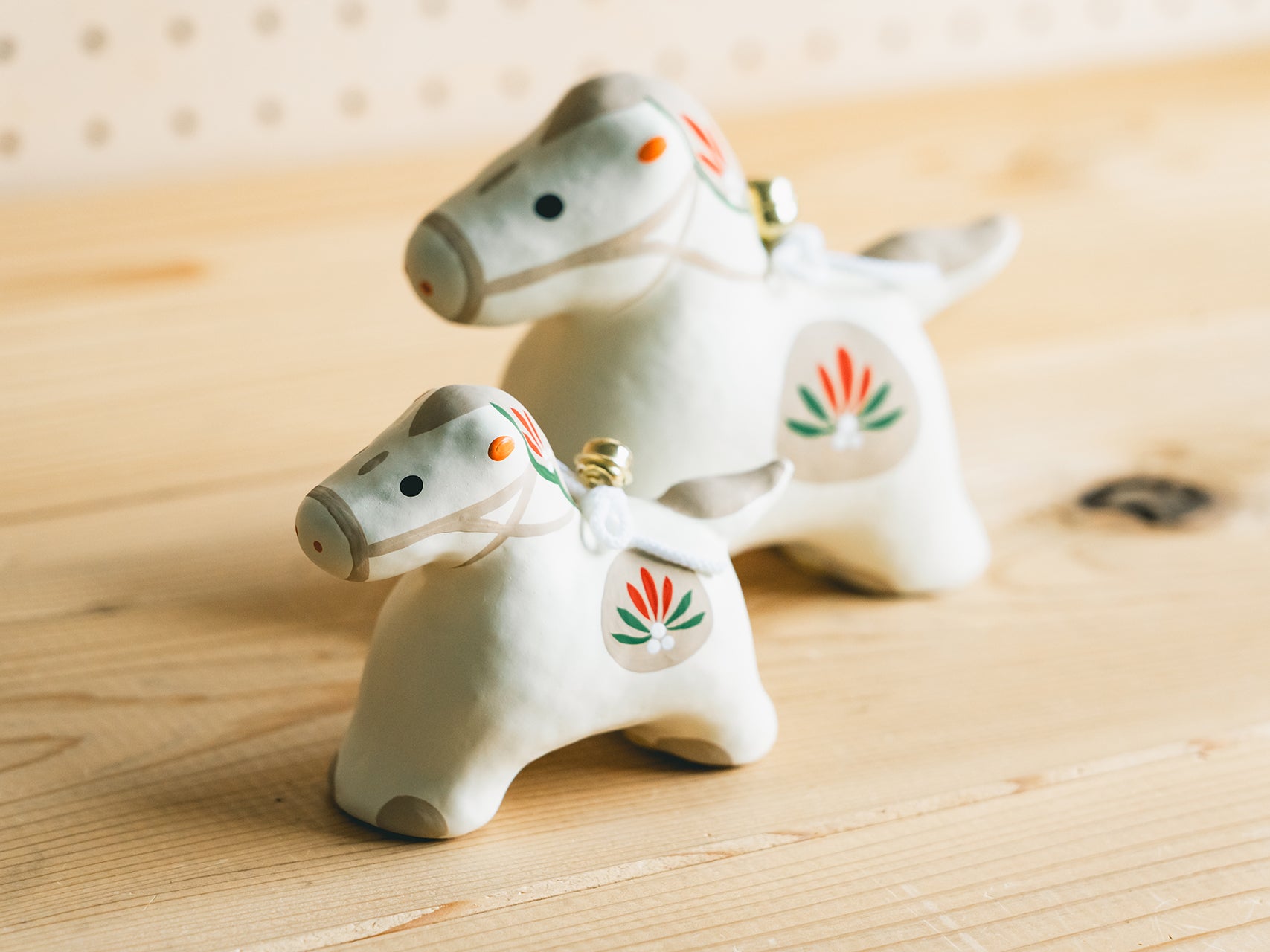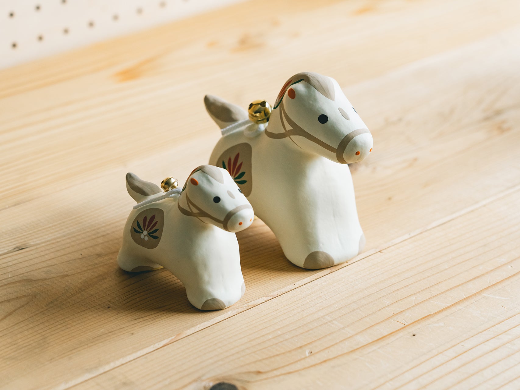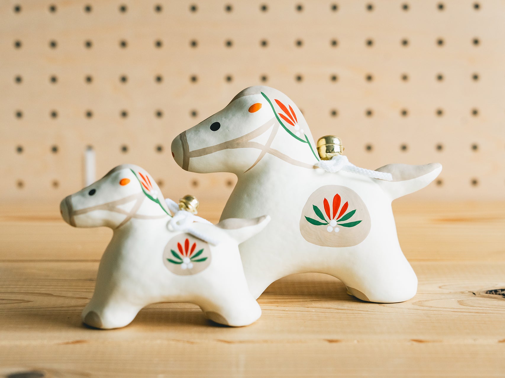 「午」は生命力の象徴とされ、豊作、健康を呼び、人々に幸運と名声をもたらす縁起の良い干支です。「午」のごとく皆様に幸福が駆けてくるようにと、ひとつひとつ丹念におつくりいたしました。ご自宅用はもちろん、お歳暮、お年賀、お祝い等にも毎年多くのお客様にご利用いただいております。野沢民芸の干支張り子午(うま)を飾って、縁起の良い新春をお迎えください。