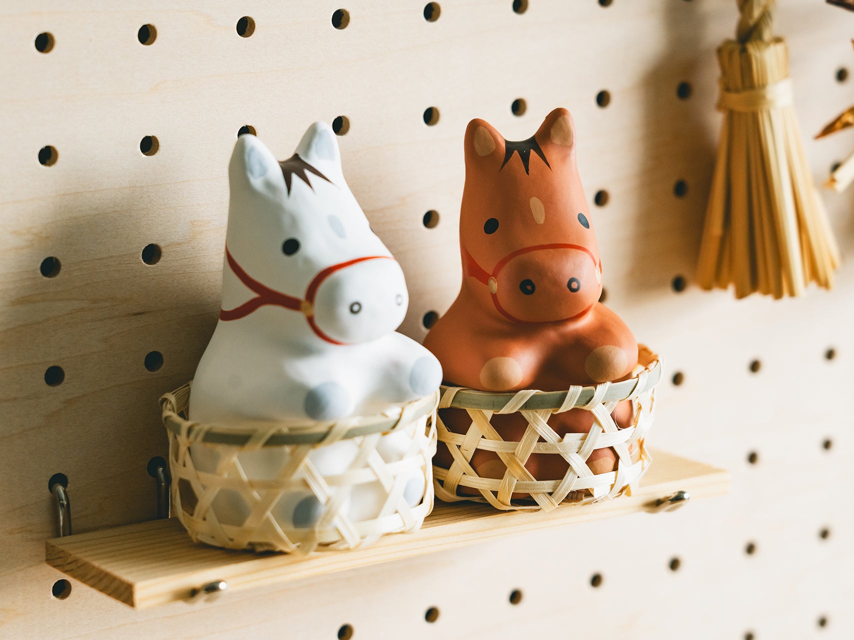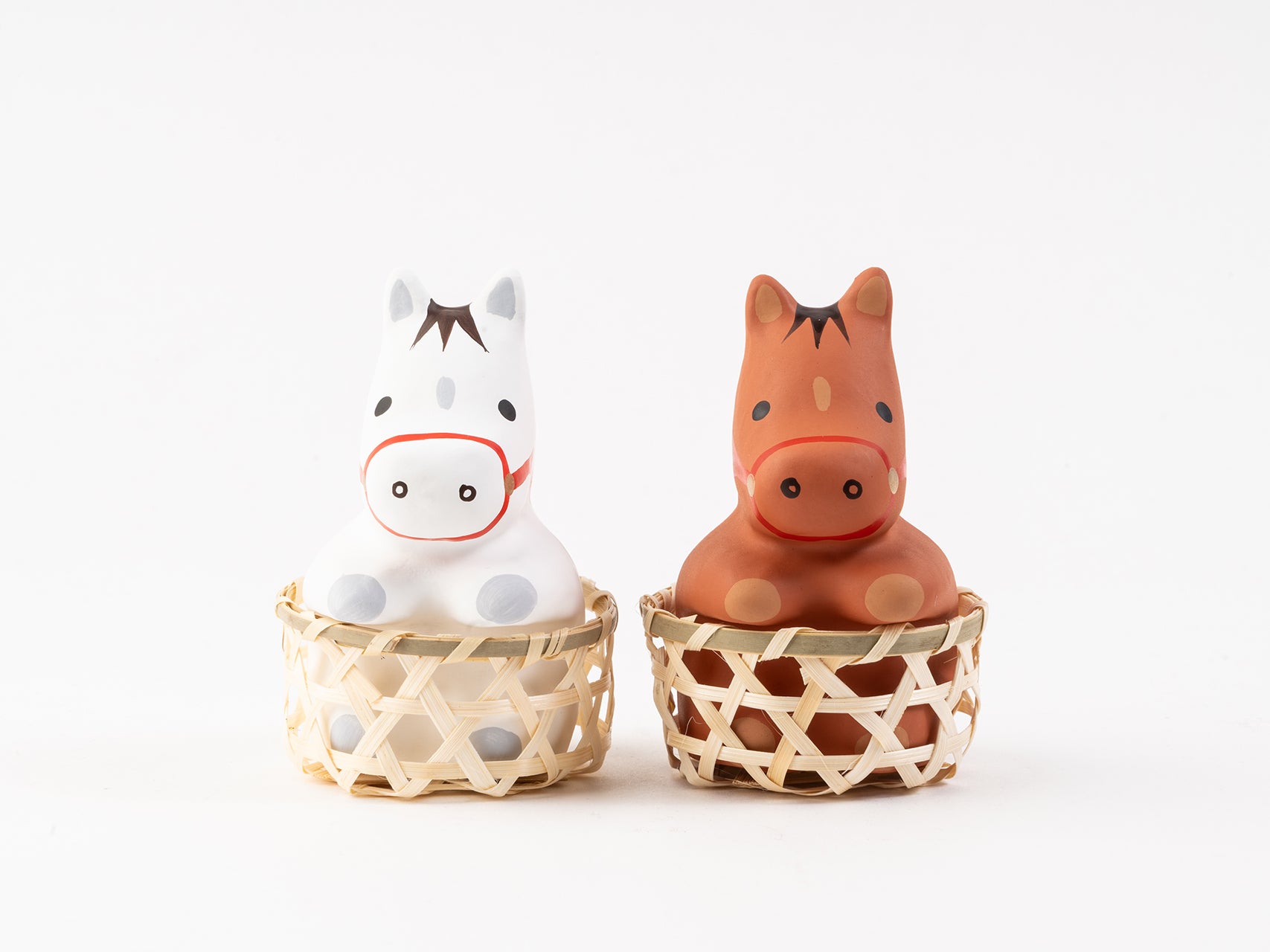 「午」は生命力の象徴とされ、豊作、健康を呼び、人々に幸運と名声をもたらす縁起の良い干支です。「午」のごとく皆様に幸福が駆けてくるようにと、ひとつひとつ丹念におつくりいたしました。ご自宅用はもちろん、お歳暮、お年賀、お祝い等にも毎年多くのお客様にご利用いただいております。野沢民芸の干支張り子午(うま)を飾って、縁起の良い新春をお迎えください。