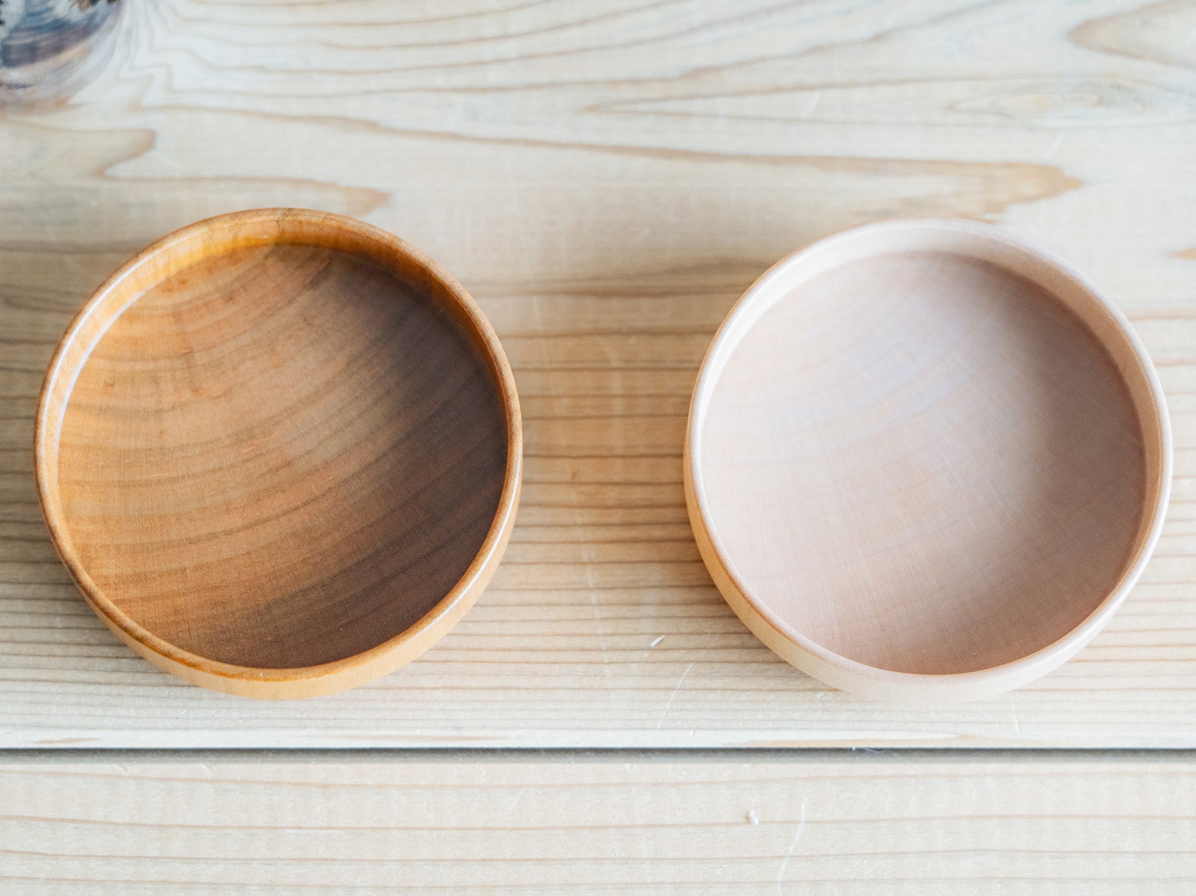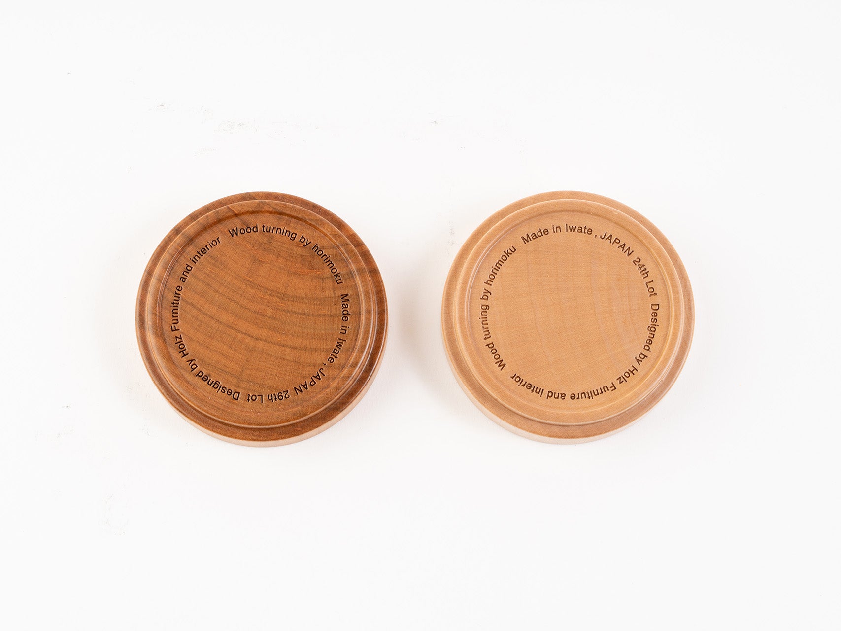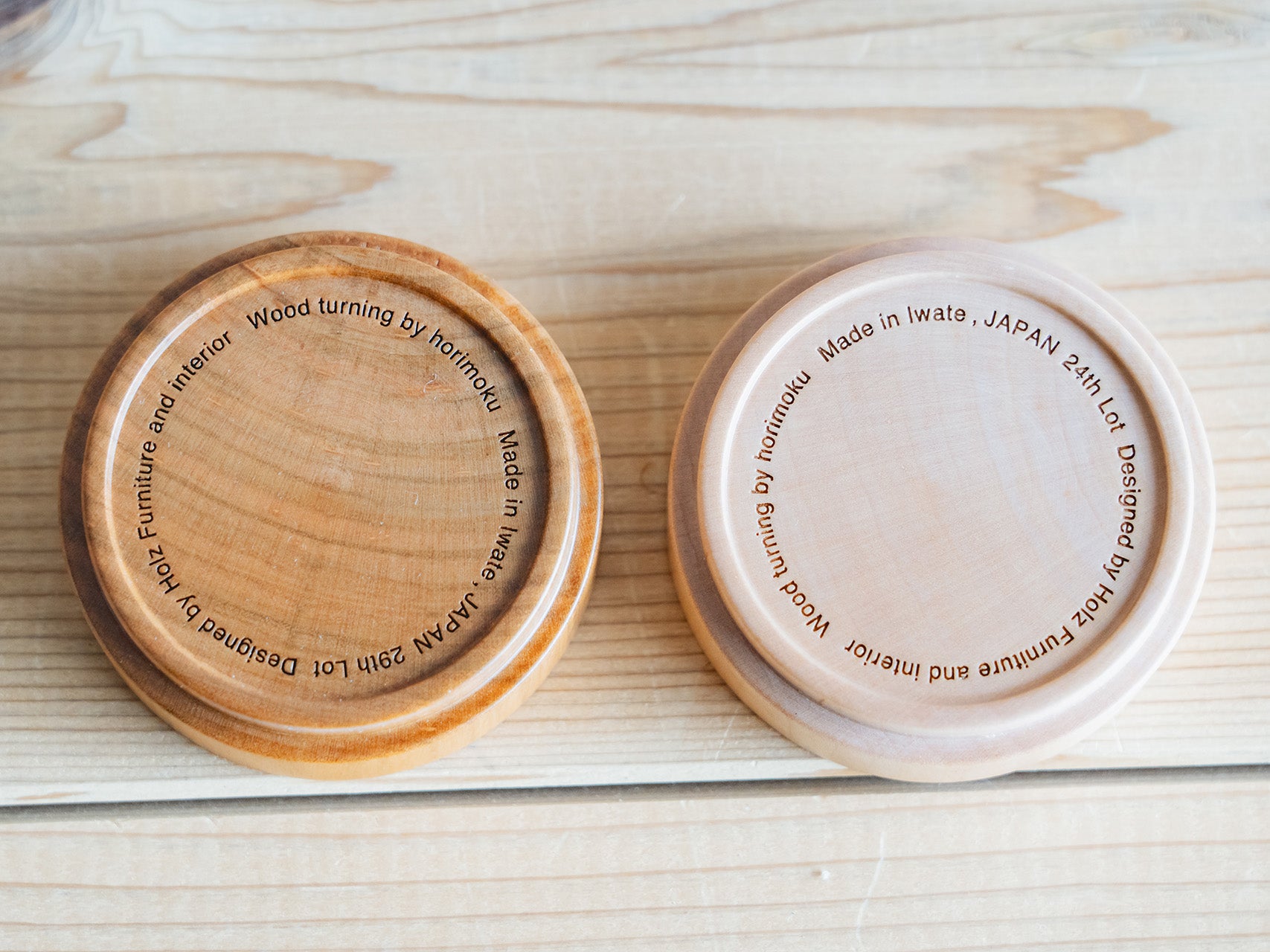 | ご注意 | ※電子レンジ、オーブン、食洗機で使用しないでください。 ※山桜は赤身だけのもの、白太の混ざっているものなど個体差はあります。 ※全体的な色味は山桜、イタヤ共に多少個体差はあります。 |