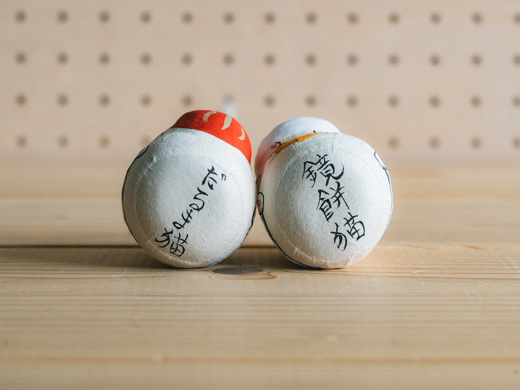 岩手の漆や成島和紙などを素材に、漆塗りや張子などの 工芸技術を使ったバッグを作っているコシェルドゥ。張り子の技術を学んだことをきっかけに起き上がり人形も製作しています。